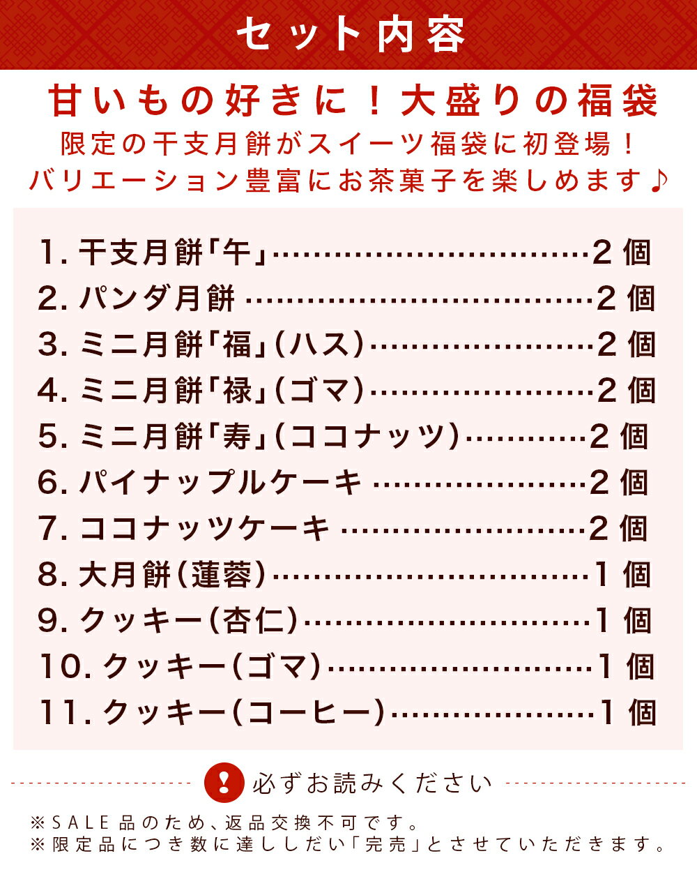 リムテー 新春 正月 福袋 2026 横浜 中華街 中華菓子 全11商品 計18点 リムテー 期間限定 「禄」 ケーキ クッキー 洋菓子 和菓子 お年賀 送料無料